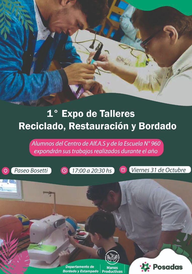 Este viernes 31 de octubre, de 17:00 a 20:30 horas, se llevará a cabo la 1° Expo de Talleres de Reciclado, Restauración y Bordado en el tradicional Paseo Bosetti, ubicado sobre calle Bolívar casi Buenos Aires. La muestra, que en un primer momento debió suspenderse por inclemencias climáticas, reunirá los trabajos realizados durante el año por los alumnos del Centro Educativo Central AlfAS y la Escuela N.º 960. La exposición propone un recorrido por piezas únicas elaboradas con materiales reciclados, técnicas de restauración y bordado artesanal, reflejo del esfuerzo y la dedicación de estudiantes y docentes que promueven la educación con una visión sustentable